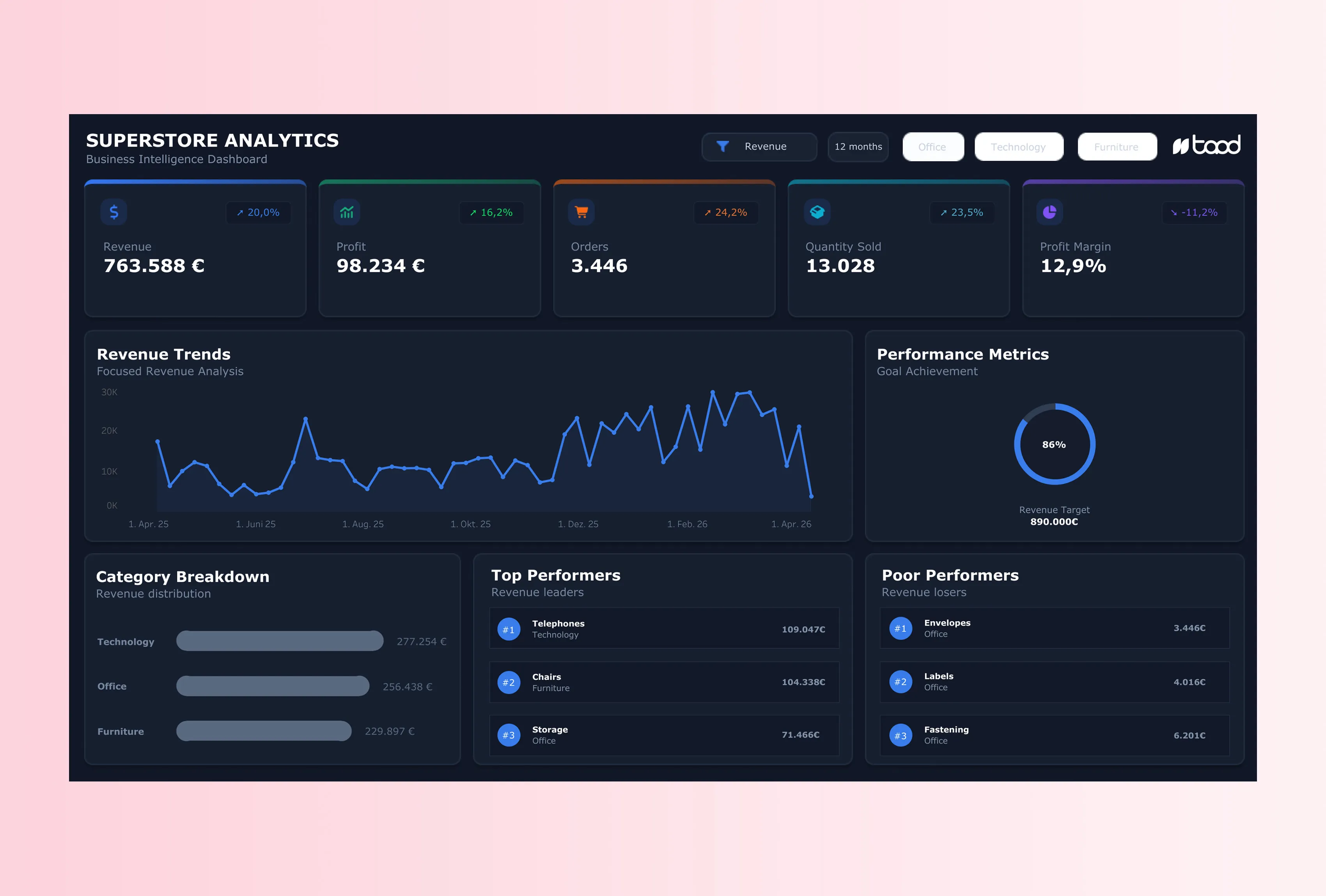 BI-Strategie, Dashboards oder Toolauswahl. Wir beraten dich und setzen für dich um.
